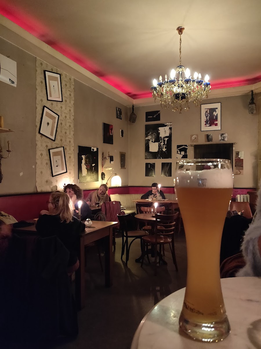 In the afternoons, you might find fellow visitors creating art, a testament to the inspiring atmosphere that prompts creativity. The low-key charm of the café is complemented by soft candlelight in the evening, offering a picturesque setting to unwind after a busy day exploring Berlin.